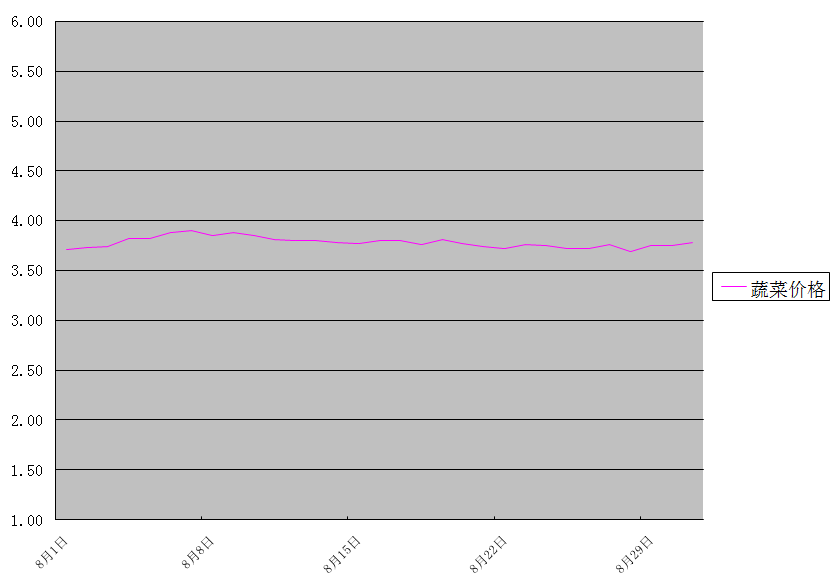 本月蔬菜批發(fā)均價為3.78元/公斤,環(huán)比上升15.9%,同比上升1.9%。